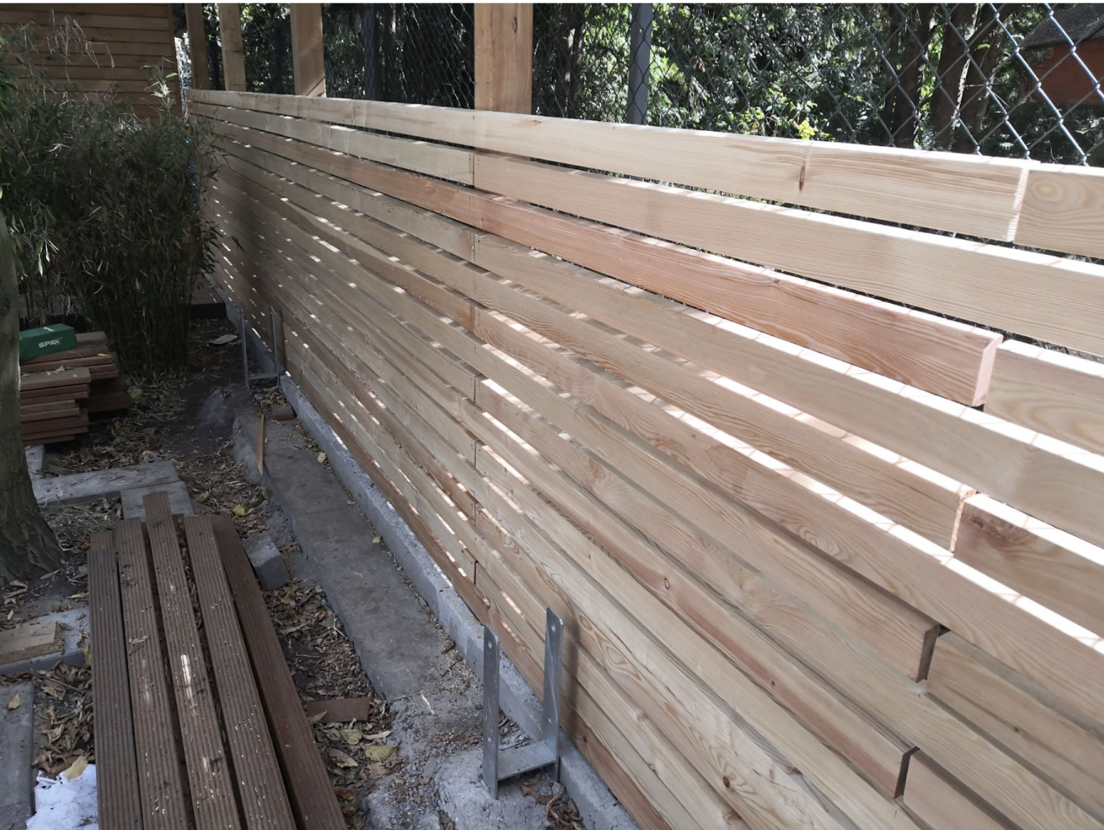 Montage eines Holz-Sichtschutzzauns im Rahmen eines Garten- und Landschaftsbauprojekts in Bad Segeberg.